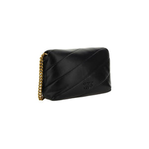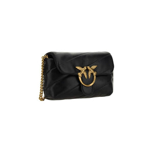 Calfskin Love Baby Shoulder Bag by Pinko, front closure with magnetic button, iconic gold-plated Love Birds logo embossed on the front, quilted and padded design, double internal compartment, sliding chain shoulder strap, iconic brand monogram embroidered tone-on-tone on the back.
