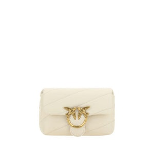 Calfskin Love Baby Shoulder Bag by Pinko, front closure with magnetic button, iconic gold-plated Love Birds logo embossed on the front, quilted and padded design, double internal compartment, sliding chain shoulder strap, iconic brand monogram embroidered tone-on-tone on the back.