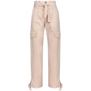 Step into a world of modern sophistication with PINKO’s expertly tailored cotton trousers. A testament to chic functionality, these pants are detailed with stylish side cargo pockets, adding an edge to your ensemble. Cinched at the waist with a ribbon belt, they promise a flattering fit, while the two-button fastening and zip offer effortless wear. Crafted with a touch of elastane, they ensure comfort without compromising on form. Invigorate your wardrobe with this elegant hue of pink, a playful yet polished choice.
