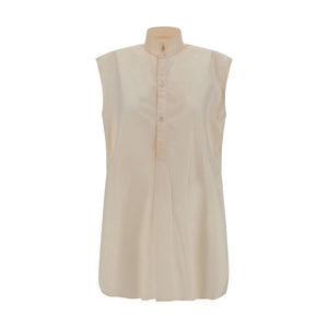 Quira’s cotton Shirt is an elegant and sophisticated garment featuring a sleeveless design and mandarin collar that add a touch of sophistication. The half-bust closure by buttons on the front adds a practical and elegant detail. The vintage effect design and side slits offer a dynamic and modern silhouette, while the monochrome pattern maintains an understated and versatile look. The oversize fit ensures comfort and a contemporary silhouette.