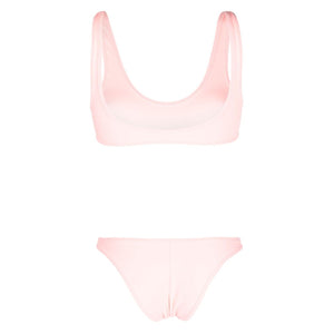 Coolio scoop-neck bikini set from REINA OLGA featuring pink, recycled polyamide blend, stretch-design, tonal stitching, scoop neck, scoop back, sleeveless and elasticated waistband. Be mindful to try on swimwear over your own garments.. This item is made from at least 50% recycled or upcycled materials. For recycled synthetic clothing products, we highly recommend using a microfibre-catching washing bag to ensure that no microplastics that can pollute water are released in the process.. Learn more about what makes a product Conscious on our Conscious Criteria page. Coolio bikini set Size and Fit - This piece fits true to size. We recommend you get your regular size. Model is 1,75m / 5ft 8in wearing size 1 (NUM)