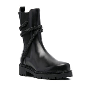 jet black leather wraparound style pull-tab at the heel branded leather insole rubber sole Cleo biker boots Size and Fit - Heel 1,6 in / 4 cm; Platform 0,6 in / 1,5 cm