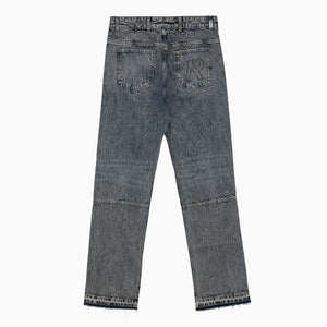 Blue cotton denim washed out regular jeans from Represent featuring five classic pockets, belt loops, a front zip and button fastening, a raw cut hem and an embroidered logo on the back pocket. Size and Fit - Model wears size 32 Model measurements: Height: 187 cm Chest: 102 cm Waist: 76 cm Hips: 92 cm