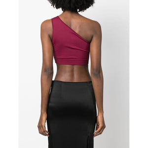 one-shoulder cropped top from Rick Owens featuring fuchsia pink, stretch-design, pullover design, one-shoulder, cropped and ribbed hem. Knitted one-shoulder bandeau top Size and Fit - This piece fits true to size. We recommend you get your regular size. Model is 1,75m / 5ft 8in wearing size S