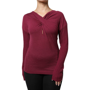 Roberto Cavalli Maroon Jumper Keyhole Knit Pullover Sweater
