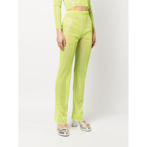 rhinestone-embellished straight trousers from Santa Brands featuring lime green, rhinestone embellishment, semi-sheer construction, elasticated waistband, high-waisted and straight leg. Sparkling trousers Size and Fit - This piece fits true to size. We recommend you get your regular size. Model is 1,75m / 5ft 8in wearing size S