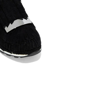 – Composition: 100% Fabric – Inner: Fabric – Insole: Leather – Sole: Rubber – Suede detail – pull tab at the rear – Round toe – Fringe top details – Slip-on design – Top metal logo hardware – Made in Italy – Gender: WOMEN –
