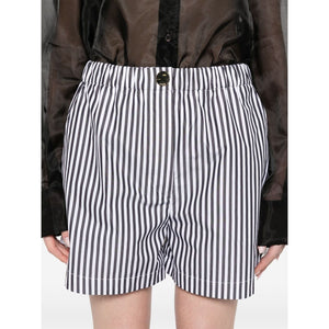 black front button and zip fastening elasticated waistband two side slash pockets two rear patch pockets Striped cotton shorts Size and Fit - This piece fits true to size. We recommend you get your regular size. Model is 1,75m / 5ft 8in wearing size 40 (IT)