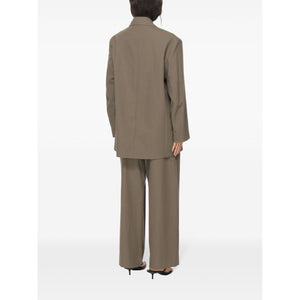 taupe brown cotton blend front button fastening notched lapels chest welt pocket front flap pockets long sleeves straight hem Wool single-breasted blazer jacket Size and Fit - This piece fits true to size. We recommend you get your regular size. Model is 1,75m / 5ft 8in wearing size 8 (UK)