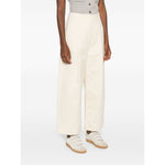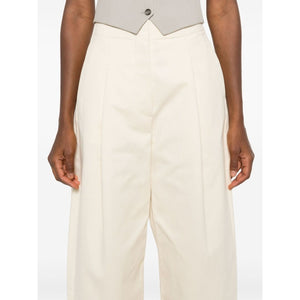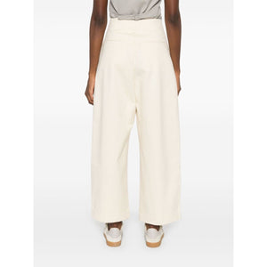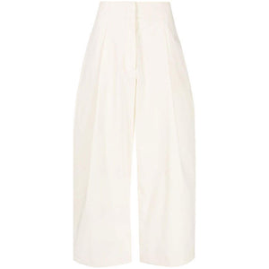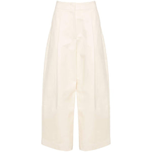 ecru cotton twill weave pleat detailing high waist concealed front fastening two side slit pockets two rear welt pockets wide leg cropped leg Cotton wide leg trousers Size and Fit - This piece fits true to size. We recommend you get your regular size. Model is 1,75m / 5ft 8in wearing size 8 (UK)