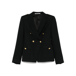black double-breasted button fastening shoulder pads two side flap pockets rear central vent Wool double-breasted jacket Size and Fit - This piece fits true to size. We recommend you get your regular size. Model is 1,75m / 5ft 8in wearing size 40 (IT)