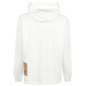 Felpa bianca con cappuccio, polsini elasticizzati e tasca frontale con patta e chiusura a bottoni. Cotton hoodie Size and Fit - This piece fits true to size. We recommend you get your regular size. Model is 1,84m / 6ft 1in wearing size M