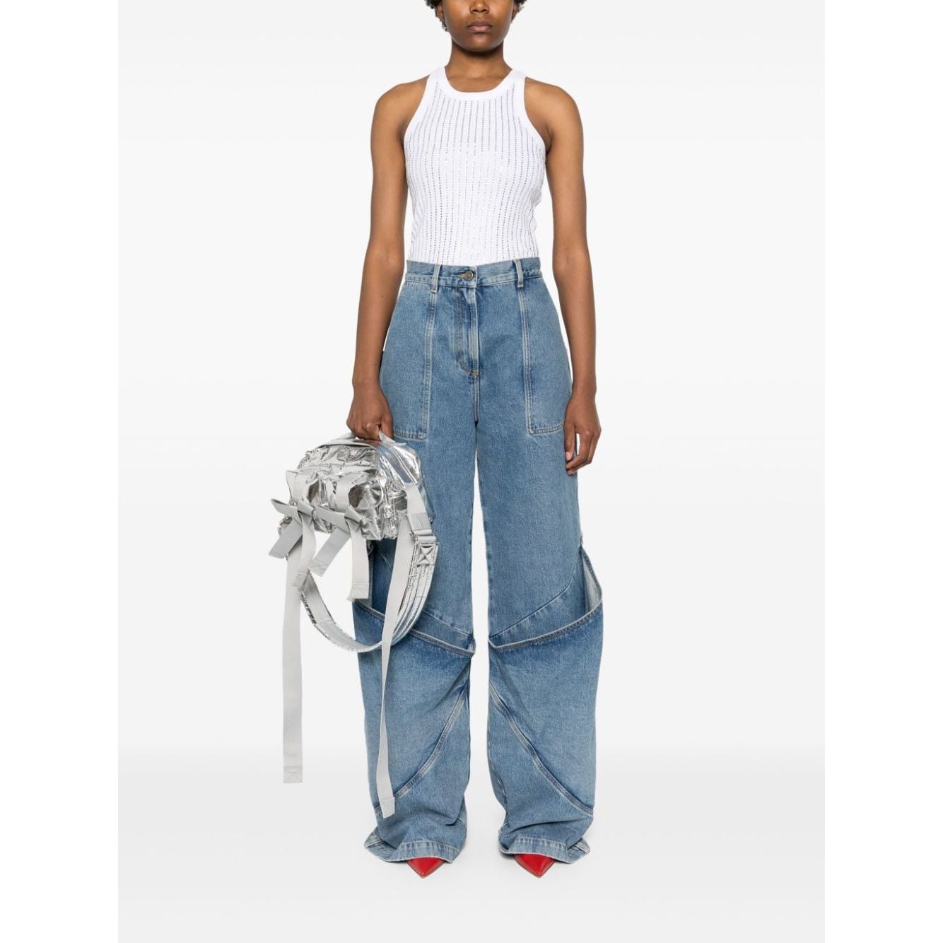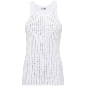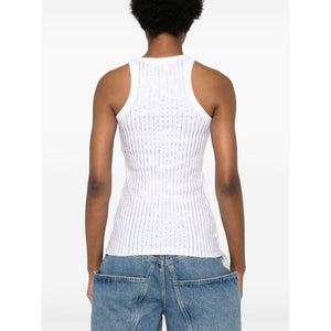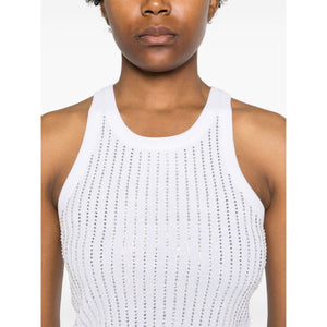optical white cotton ribbed knit rhinestone embellishment scoop neck sleeveless straight hem Strass embellished cotton top Size and Fit - This piece fits true to size. We recommend you get your regular size. Model is 1,75m / 5ft 8in wearing size 40 (IT)