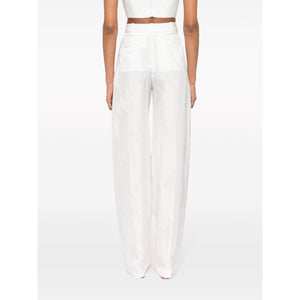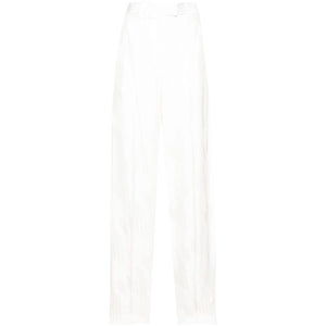 milk white satin weave all-over jacquard logo motif pressed crease belt loops two side inset pockets two rear welt pockets concealed front button, hook and zip fastening Logo trousers Size and Fit - This piece fits true to size. We recommend you get your regular size. Model is 1,75m / 5ft 8in wearing size 40 (IT)