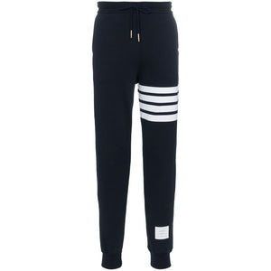 Blue cotton Engineered 4-Bar Jersey Sweatpant from Thom Browne. 4-Bar cotton sweatpants Size and Fit - This piece fits true to size. We recommend you get your regular size. Model is 1,84m / 6ft 1in wearing size 2 (NUM)