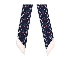 Valentino Garavani’s cherry-print silk Bandeaux Scarf, an elegant accessory with a lively character. Made of high-quality silk, it features an original cherry print and the unmistakable contrasting VLogo, the iconic symbol of the fashion house. Versatile and refined, it can be worn around the neck, in the hair or as a decorative detail on bags and handles.