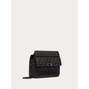 Valentino Garavani Rockstud Spike medium chain bag in soft lambskin nappa leather. Quilted and decorated with small tone-on-tone studs. The bag can be worn on the shoulder/cross-body or hand-held thanks to its removable handle and sliding chain.