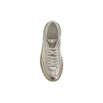 Valentino Garavani’s Upvillage Sneakers in laminated calf leather combine light and character in a contemporary silhouette. The tasseled calf leather band creates an elegant contrast, on which the Valentino Garavani logo, also featured on the tongue, stands out. The rubber sole, personalized with the iconic stud detail, completes the design with a gritty and distinctive touch.