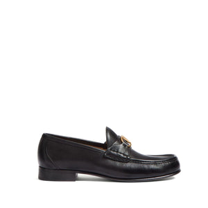 black goatskin smooth grain VLogo Signature moc stitching slip-on style almond toe VLogo Signature leather loafers Size and Fit - Heel 1,4 in / 3,5 cm