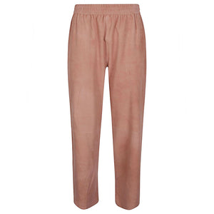 Pantaloni in pelle veri rosa, taglio largo, coulisse in vita e due tasche laterali a filetto. Suede leather trousers Size and Fit - This piece fits true to size. We recommend you get your regular size. Model is 1,75m / 5ft 8in wearing size 40 (IT)