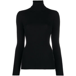 black virgin wool ribbed knit fitted silhouette roll neck long sleeves Wool turtle-neck sweater