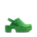 Pantofole con dettaglio logo in rilievo di XOCOI con tacco basso e largo, verde brillante, logo inciso, cinturino posteriore, punta tonda e soletta con marchio. Slingback platform mules Size and Fit - Heel 2,4 in / 6 cm; Platform 1,4 in / 3,5 cm