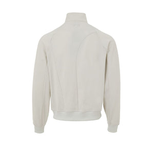 In ice white technical fabric, front fastening with tone-on-tone zip, two side welt pockets with hidden zip, turtleneck. On the back applied rubberized tone-on-tone logo. Slim fit