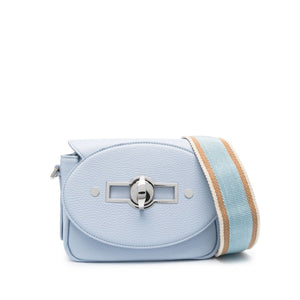 small Tina Daily leather shoulder bag from ZANELLATO featuring light blue, calf leather, grained texture, silver-tone hardware, internal logo patch, foldover top, twist-lock fastening, adjustable detachable shoulder strap, main compartment and internal zip-fastening pocket. Small Tina Daily leather crossbody bag Size and Fit - Width 7,87 in / 20 cm