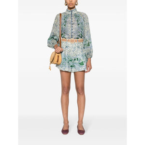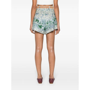 green/multicolour linen/flax pleat detailing Green Paisley print high waist belted waist belt loops concealed rear zip fastening two side slit pockets wide leg thigh-length This item contains at least 50% materials which are certified or widely recognised as having a lower environmental impact through production and/or manufacturing processes that reduce water consumption and the use of harmful chemicals, or re-use by-products of the production process. Learn more about what makes a product Conscious on our Conscious Criteria page Paisley print linen shorts Size and Fit - This piece fits true to size. We recommend you get your regular size. Model is 1,75m / 5ft 8in wearing size 1 (NUM)